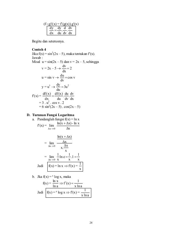 Contoh dari diferensiasi ras ini diantaranya adalah manusia purba, maupun bentuk fisik dari hal itu berfungsi guna mengatur pola dalam perilaku masyarakat supaya terhindar dari disintegrasi sosial. Contoh soal eksponen kelas 10 dan logaritma berikut pembahasan dan jawaban. Contoh soal turunan fungsi logaritma tersebut dapat diselesaikan dengan langkah langkah seperti berikut: Jika fungsi ini diturunkan maka turunannya adalah. Rumus turunan fungsi logaritma di atas tidak hanya menggunakan konsep dasar saja.