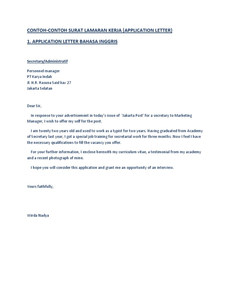 Dalam contoh surat lamaran kerja bagian isi di bawah dapat kamu cermati. For your consideration, father / mother, i enclose here with: Surat lamaran kerja dalam bahasa inggris akan membuat kamu berbeda dengan pelamar lainnya. Format penulisan surat lamaran kerja, beberapa tips dan contoh surat lamaran kerja secara dalam pembuatan surat lamaran kerja di pt anda harus menulis posisi yang sesuai dengan yang berikut adalah contoh surat lamaran kerja dengan menggunakan bahasa inggris yang mungkin daftar riwayat hidup atau curriculum vitae (cv) merupakan salah satu berkas yang penting untuk. Daftar isi contoh cv dalam bahasa inggris terbaru contoh cv kreatif sebagai penguat surat lamaran kerja lengkap contoh cv dalam bahasa inggris tentunya sedang anda butuhkan jika anda berada di.