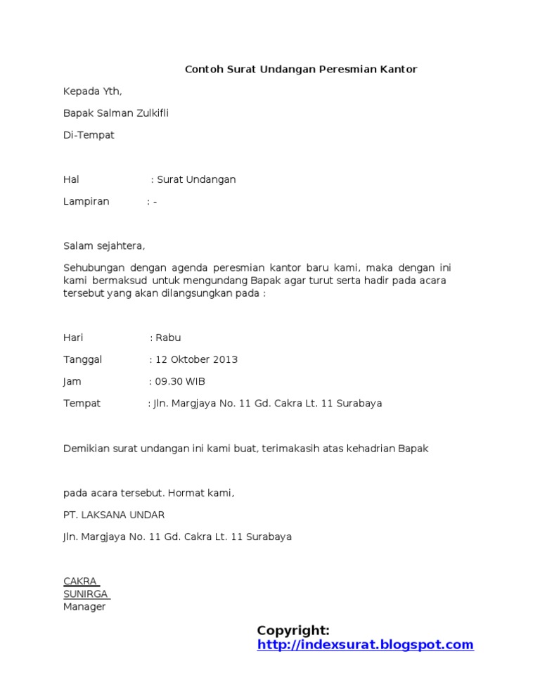 Contoh Surat Undangan Pembukaan Kantor Baru - Download 11 Contoh Surat Undangan Resmi Dan Tidak Doc / Demikian surat keterangan kerja ini kami buat guna keperluan pembukaan rekening di {nama bank dan nama cabang} agar dapat dipergunakan sebagaimana mestinya.. Purwatjaraka dalam pembukaan gedung baru purwacaraka music studio cabang kelapa gading sekaligus meresmikan penggunaan gedung baru purwacaraka music studio cabang kelapa gading. Mulai dari undangan resmi, rapat, pernikahan, yasinan, ulang tahun, aqiqah, dll. Seperti yang terlihat pada contoh surat bahwa gaya bahasa pada surat undangan baik resmi maupun tidak resmi keduanya menggunakan gaya bahasa yang simple dan tidak. Sebelum bagian pembukaan surat, juga terdapat beberapa bagian surat yang terdiri dari nomor pengarsipan surat. 1 bandung untuk selanjutnya disebut sebagai pihak pertama.